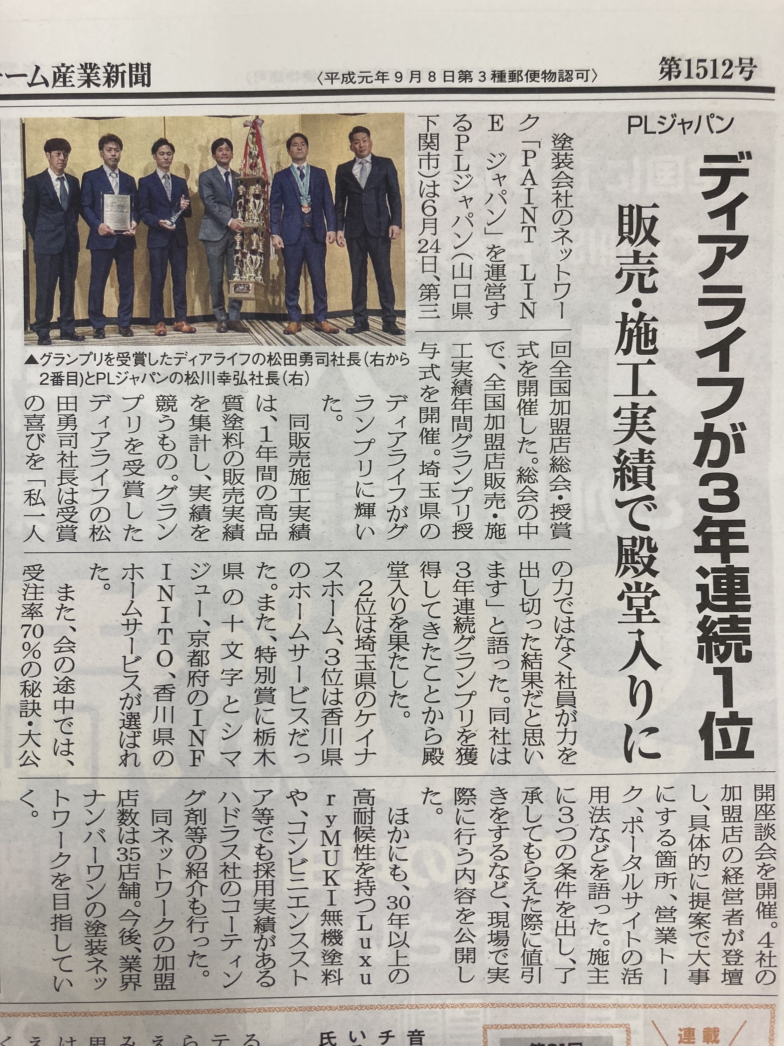 6月に行われたPLジャパンの全国加盟店総会・授賞式の様子が、先月のリフォー