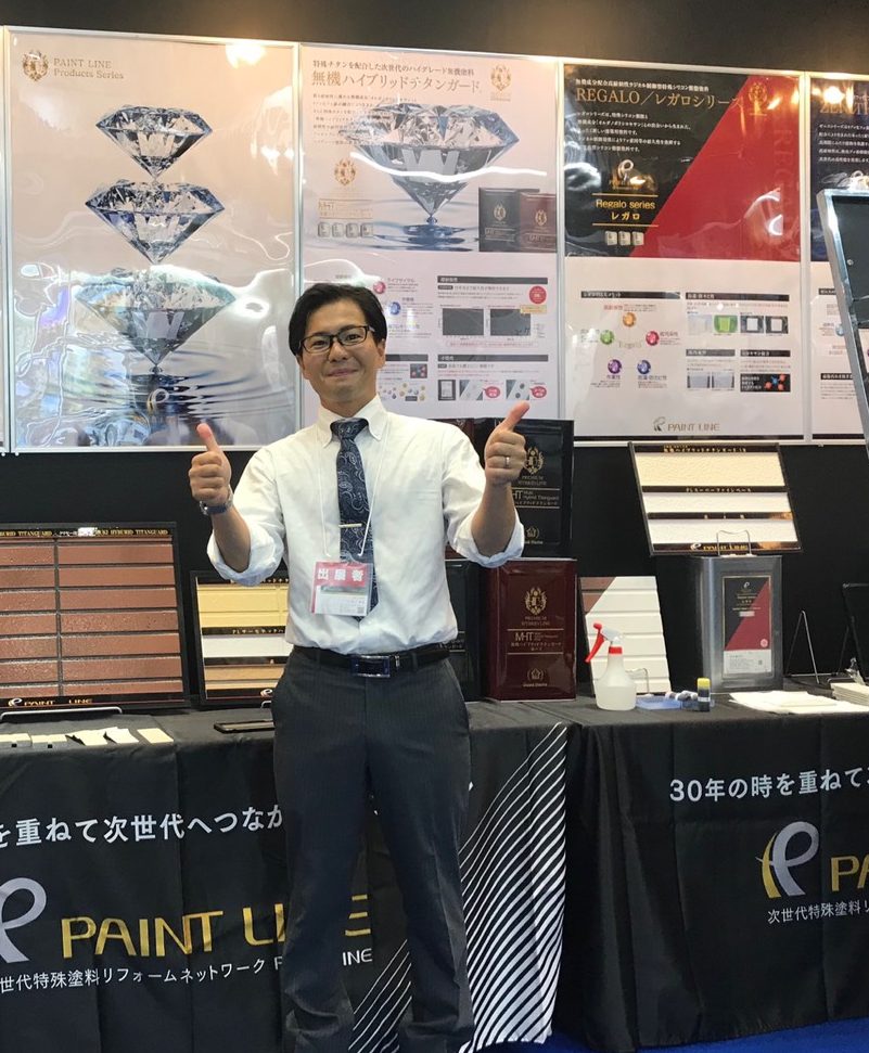 さて、当社の松田も参加してました。われらがペイントラインブースです。