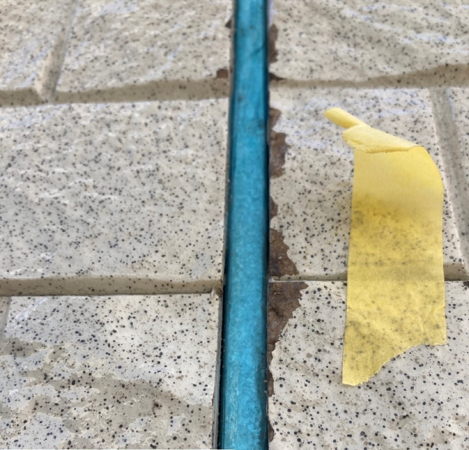 ひび割れが見られるので、こちらも分かりやすいようにマスキングテープを貼っています。