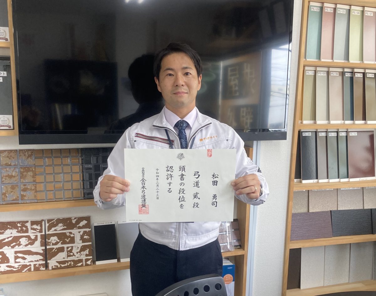 なかでもここ数年前に始めた弓道にはまっていて、この間も昇段試験で二段にチャレンジをしました。練習時間も少ない中で頑張った結果、見事合格致しました!