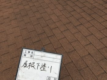 アスファルトシングル材の屋根の塗装工事中です!