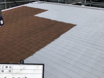 アスファルトシングル材の屋根は、塗料の吸い込みが激しいため、他の屋根材より塗料を多く使います。