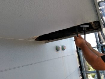 現場のほうでは、多能工の健さんがベランダ部分の傷んだ軒天を交換補修しております。