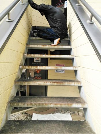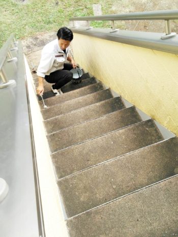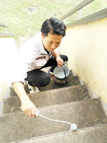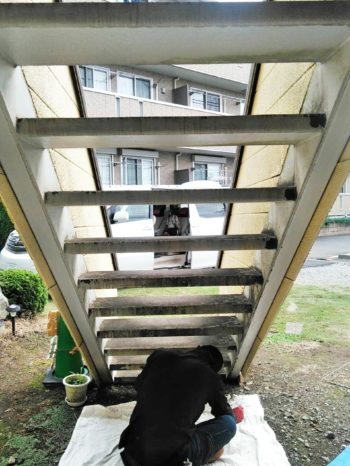 鉄骨階段塗装工事をしております!