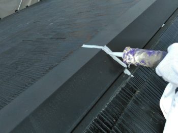 またスレート自体にもひびが入ってれば、補修を入れていきます。
