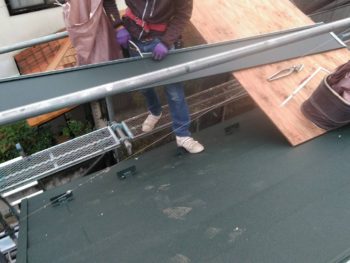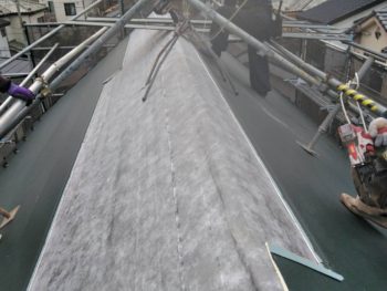 現場のほうでは、既存のスレート屋根の上に金属屋根をかぶせるカバー工法施工中です。