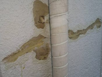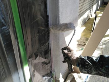 現場ではこれから塗装が始まるお家で、ALC壁の欠損部補修中です。
