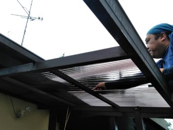 足場架設前のカーポートポリカ板外し