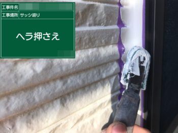 | ご提案内容 | サイディング目地は化粧シーリングで打ち替えます。サッシ回り、入り隅も同様です。破風板は下塗りにしっかりハイパーシーラーエポを使用。目地もシーリングで打ちます。 |