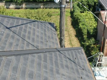 | お客様のご要望 | 飛び込み業者さんからスレートの上の板金が浮いていて、雨が吹き込んで雨漏りする可能性があると言われました。 とても不安になり、点検を兼ねてご相談したいと思い、良いリフォーム会社を探していました。 |