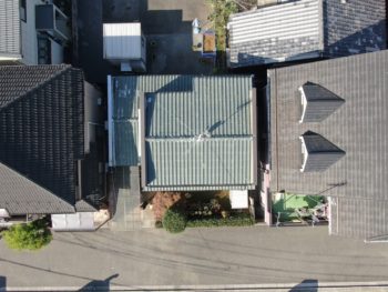 | ご提案内容 | 樋の壊れに関しては、樋全交換をする。 施工前の①~⑥はドローンで撮影した屋根の現況写真です。 屋根は葺き替え工事で、既存の屋根は解体し、野地板、ルーフィングを貼り、レクトルーフを施工。 外壁のモルタル部はプレミアムシリコン、金属トタン部、笠木部のトタンはプレミアムNADシリコンで塗装。 コロニアル部はプレミアムルーフSiで塗装。 その他付帯部も下地処理をしてから塗装。 |